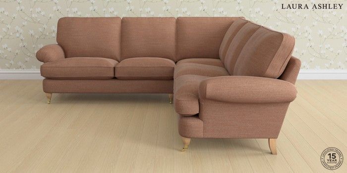 6.12.1 Buy Beaumaris by Laura Ashley Medium Corner Sofa - Universal Kinsham Rust Orange Low Brass Castor - Light Oak from the Next UK online shop Click here to use our accessible website