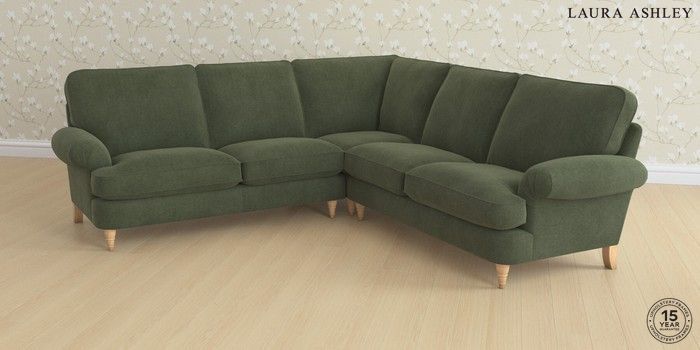6.12.13 Buy Beaumaris by Laura Ashley Medium Corner Sofa - Universal Lundar Chenille Ivy Green Low Turned - Light Oak from the Next UK online shop Click here to use our accessible website