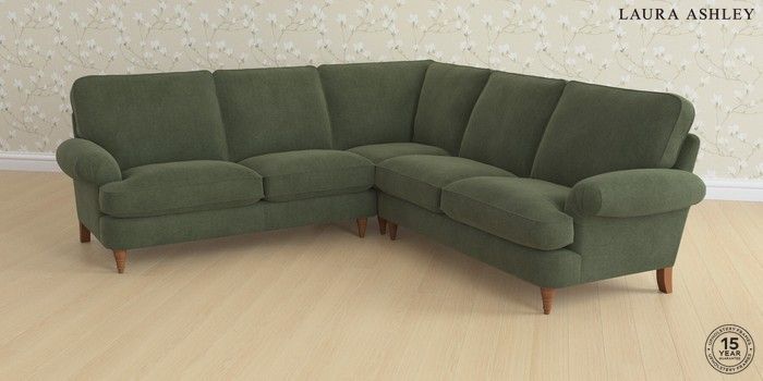 6.12.13 Buy Beaumaris by Laura Ashley Medium Corner Sofa - Universal Lundar Chenille Ivy Green Low Turned - Teak from the Next UK online shop Click here to use our accessible website