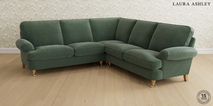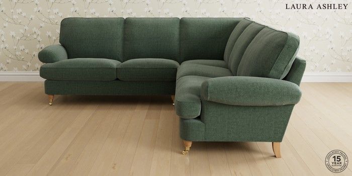 6.12.1 Buy Beaumaris by Laura Ashley Medium Corner Sofa - Universal Nantmor Fern Green Low Brass Castor - Light Oak from the Next UK online shop Click here to use our accessible website