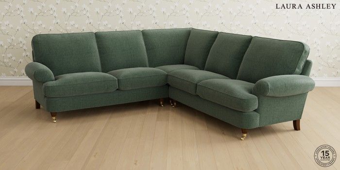 6.12.1 Buy Beaumaris by Laura Ashley Medium Corner Sofa - Universal Nantmor Fern Green Low Brass Castor - Teak from the Next UK online shop Click here to use our accessible website