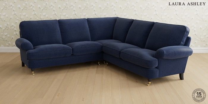6.12.1 Buy Beaumaris by Laura Ashley Medium Corner Sofa - Universal Nantmor Midnight Navy Low Brass Castor - Black from the Next UK online shop Click here to use our accessible website