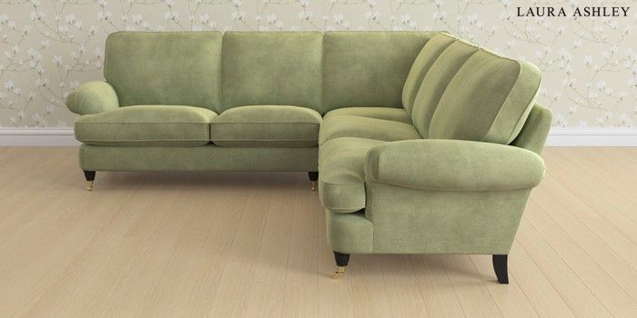 6.12.1 Buy Beaumaris by Laura Ashley Medium Corner Sofa - Universal Orla Pale Hedgerow Green Low Brass Castor - Black from the Next UK online shop Click here to use our accessible website