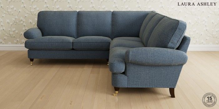 6.12.1 Buy Beaumaris by Laura Ashley Medium Corner Sofa - Universal Orla Seaspray Blue Low Brass Castor - Chestnut from the Next UK online shop Click here to use our accessible website