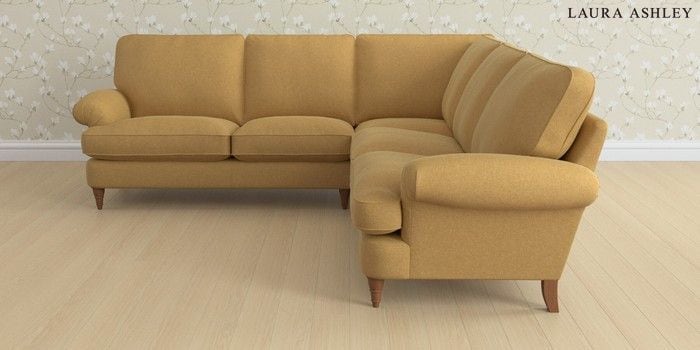 6.12.1 Buy Beaumaris by Laura Ashley Medium Corner Sofa - Universal Peyton Ochre Yellow Low Turned - Teak from the Next UK online shop Click here to use our accessible website