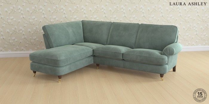 6.12.13 Buy Beaumaris by Laura Ashley Medium Sofa Chaise - Left Hand Ailsworth Fern Green Low Brass Castor - Chestnut from the Next UK online shop Click here to use our accessible website