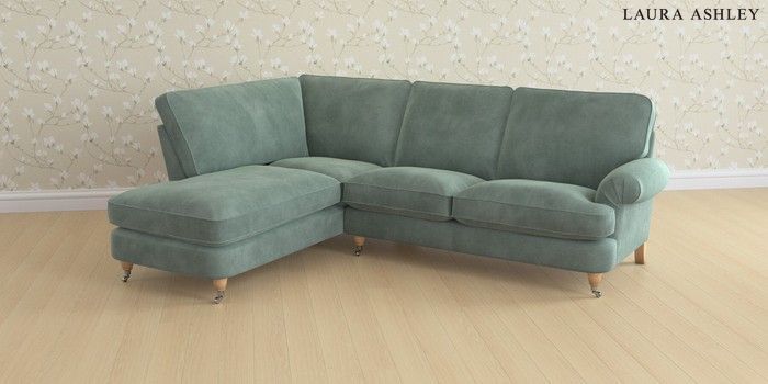 6.12.13 Buy Beaumaris by Laura Ashley Medium Sofa Chaise - Left Hand Ailsworth Fern Green Low Chrome Castor - Light Oak from the Next UK online shop Click here to use our accessible website