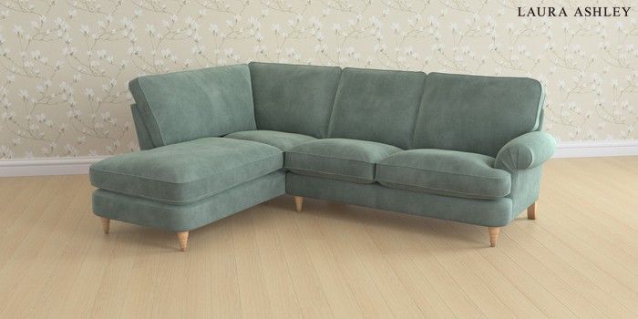 6.12.13 Buy Beaumaris by Laura Ashley Medium Sofa Chaise - Left Hand Ailsworth Fern Green Low Turned - Light Oak from the Next UK online shop Click here to use our accessible website