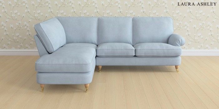 6.12.1 Buy Beaumaris by Laura Ashley Medium Sofa Chaise - Left Hand Ailsworth Newport Blue Low Brass Castor - Light Oak from the Next UK online shop Click here to use our accessible website