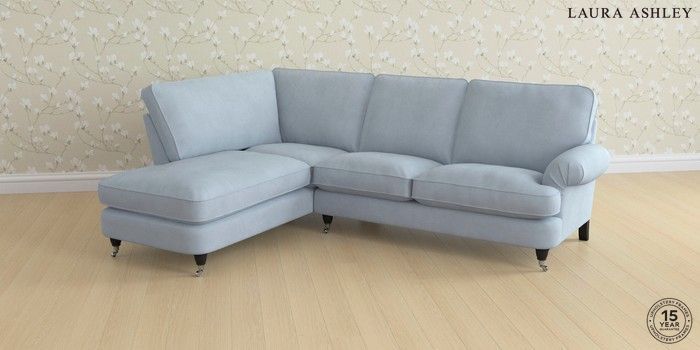 6.12.1 Buy Beaumaris by Laura Ashley Medium Sofa Chaise - Left Hand Ailsworth Newport Blue Low Chrome Castor - Black from the Next UK online shop Click here to use our accessible website