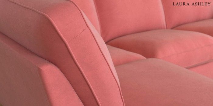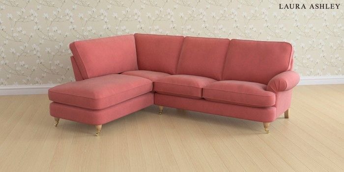 6.12.1 Buy Beaumaris by Laura Ashley Medium Sofa Chaise - Left Hand Ailsworth Old Rose Pink Low Brass Castor - Light Oak from the Next UK online shop Click here to use our accessible website