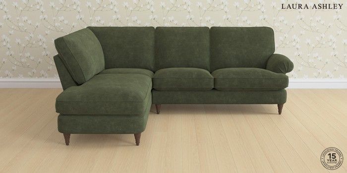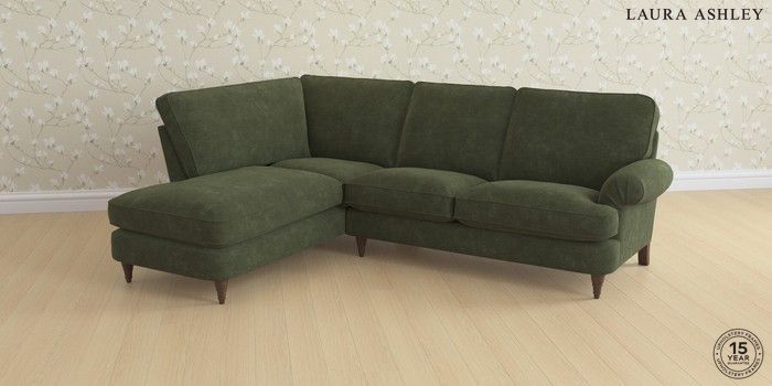 6.12.1 Buy Beaumaris by Laura Ashley Medium Sofa Chaise - Left Hand Alwyn Velvet Ivy Green Low Turned - Chestnut from the Next UK online shop Click here to use our accessible website