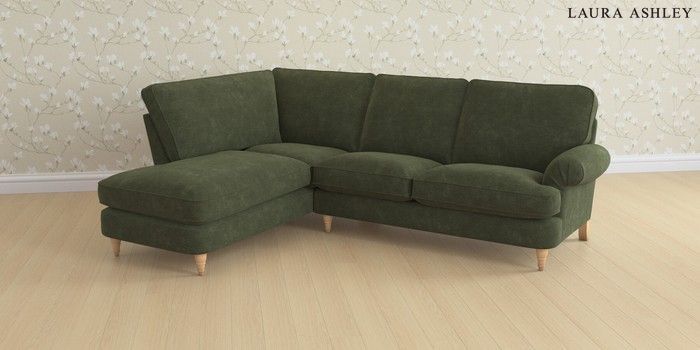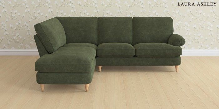 6.12.1 Buy Beaumaris by Laura Ashley Medium Sofa Chaise - Left Hand Alwyn Velvet Ivy Green Low Turned - Light Oak from the Next UK online shop Click here to use our accessible website