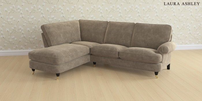 6.12.1 Buy Beaumaris by Laura Ashley Medium Sofa Chaise - Left Hand Alwyn Velvet Truffle Natural Low Brass Castor - Black from the Next UK online shop Click here to use our accessible website