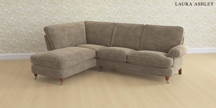 6.12.1 Buy Beaumaris by Laura Ashley Medium Sofa Chaise - Left Hand Alwyn Velvet Truffle Natural Low Chrome Castor - Teak from the Next UK online shop Click here to use our accessible website