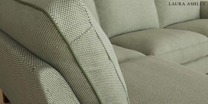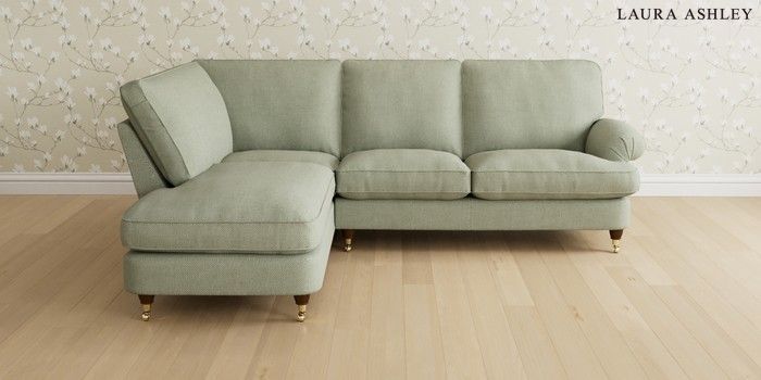 6.12.1 Buy Beaumaris by Laura Ashley Medium Sofa Chaise - Left Hand Anneliese Sage Green Low Brass Castor - Teak from the Next UK online shop Click here to use our accessible website