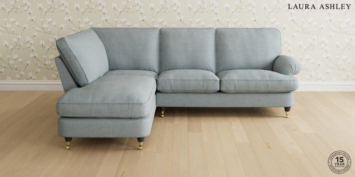 6.12.1 Buy Beaumaris by Laura Ashley Medium Sofa Chaise - Left Hand Anneliese Seaspray Blue Low Brass Castor - Black from the Next UK online shop Click here to use our accessible website