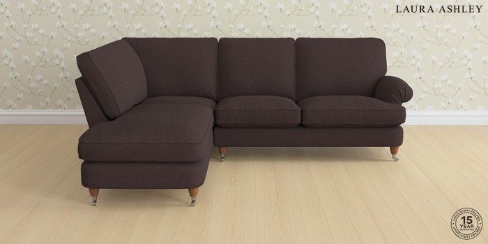 7.0.3 Buy Beaumaris by Laura Ashley Medium Sofa Chaise - Left Hand Bainton Chocolate Brown Low Chrome Castor - Teak from the Next UK online shop Click here to use our accessible website