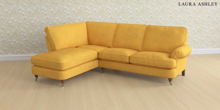 6.12.1 Buy Beaumaris by Laura Ashley Medium Sofa Chaise - Left Hand Bainton Ochre Yellow Low Chrome Castor - Teak from the Next UK online shop Click here to use our accessible website