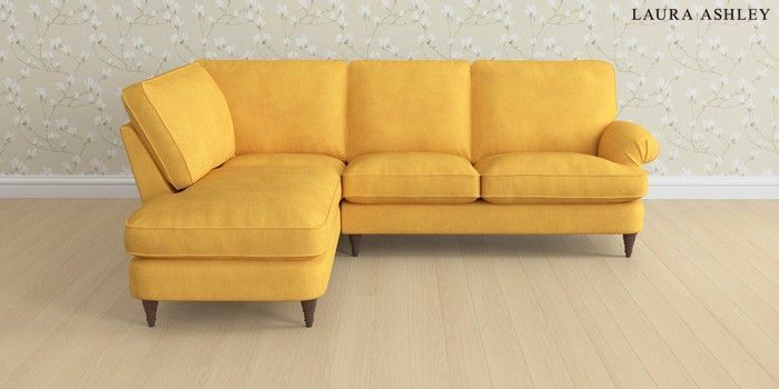6.12.1 Buy Beaumaris by Laura Ashley Medium Sofa Chaise - Left Hand Bainton Ochre Yellow Low Turned - Chestnut from the Next UK online shop Click here to use our accessible website