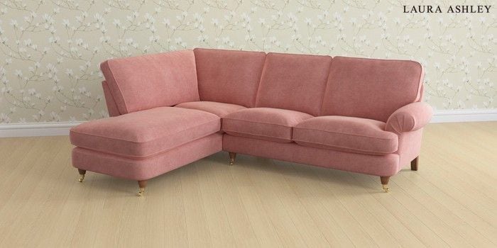 6.12.1 Buy Beaumaris by Laura Ashley Medium Sofa Chaise - Left Hand Bainton Old Rose Pink Low Brass Castor - Teak from the Next UK online shop Click here to use our accessible website