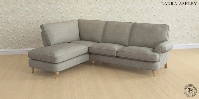 6.12.1 Buy Beaumaris by Laura Ashley Medium Sofa Chaise - Left Hand Bainton Pale Steel Grey Low Brass Castor - Light Oak from the Next UK online shop Click here to use our accessible website