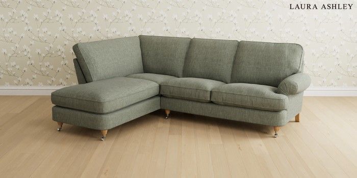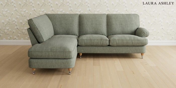 6.12.1 Buy Beaumaris by Laura Ashley Medium Sofa Chaise - Left Hand Bainton Sage Green Low Chrome Castor - Light Oak from the Next UK online shop Click here to use our accessible website