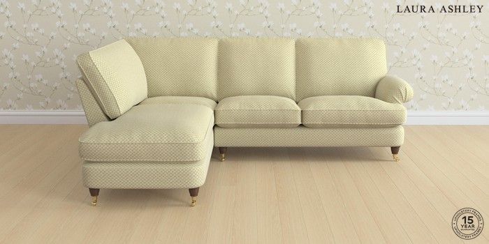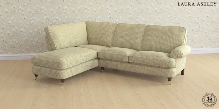 6.12.1 Buy Beaumaris by Laura Ashley Medium Sofa Chaise - Left Hand Chequers Hedgerow Green Low Brass Castor - Chestnut from the Next UK online shop Click here to use our accessible website