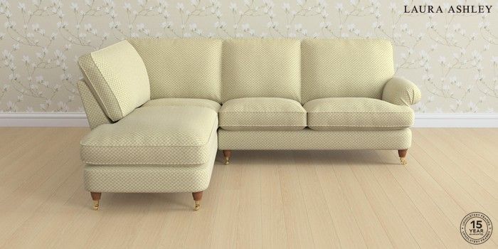 6.12.1 Buy Beaumaris by Laura Ashley Medium Sofa Chaise - Left Hand Chequers Hedgerow Green Low Brass Castor - Teak from the Next UK online shop Click here to use our accessible website