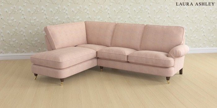 6.12.1 Buy Beaumaris by Laura Ashley Medium Sofa Chaise - Left Hand Edwin Chenille Blush Pink Low Brass Castor - Chestnut from the Next UK online shop Click here to use our accessible website