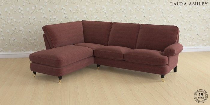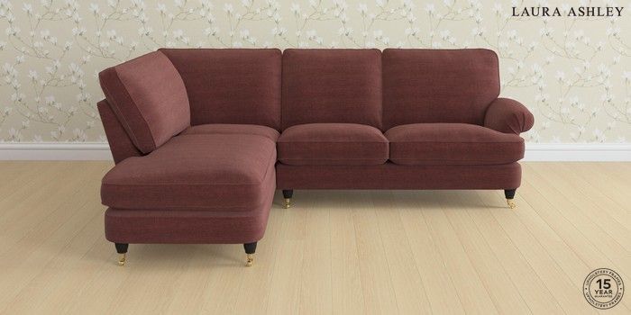 6.12.1 Buy Beaumaris by Laura Ashley Medium Sofa Chaise - Left Hand Edwin Chenille Burgundy Red Low Brass Castor - Black from the Next UK online shop Click here to use our accessible website
