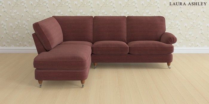 6.12.13 Buy Beaumaris by Laura Ashley Medium Sofa Chaise - Left Hand Edwin Chenille Burgundy Red Low Chrome Castor - Teak from the Next UK online shop Click here to use our accessible website