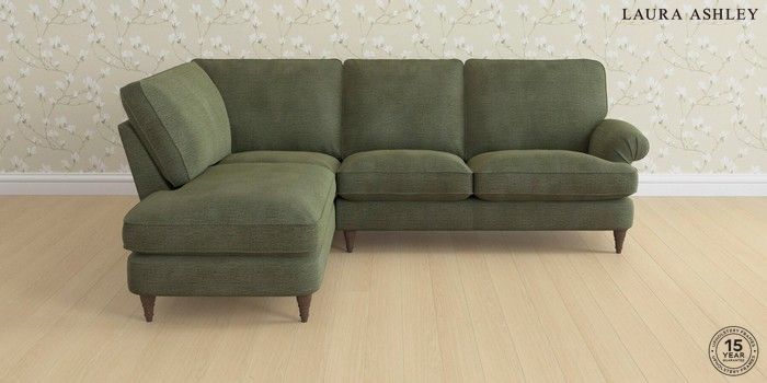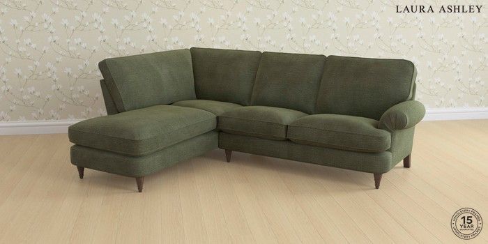 6.12.1 Buy Beaumaris by Laura Ashley Medium Sofa Chaise - Left Hand Edwin Chenille Hedgerow Green Low Turned - Chestnut from the Next UK online shop Click here to use our accessible website
