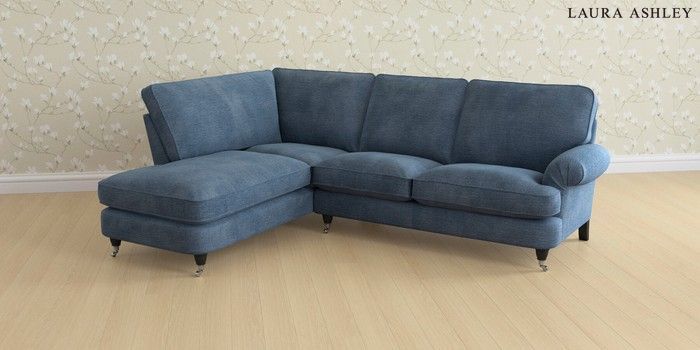 6.12.1 Buy Beaumaris by Laura Ashley Medium Sofa Chaise - Left Hand Edwin Chenille Seaspray Blue Low Chrome Castor - Black from the Next UK online shop Click here to use our accessible website