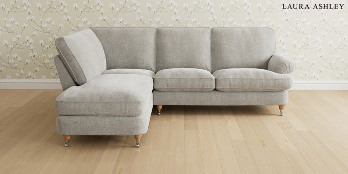 6.12.1 Buy Beaumaris by Laura Ashley Medium Sofa Chaise - Left Hand Edwin Chenille Silver Grey Low Chrome Castor - Light Oak from the Next UK online shop Click here to use our accessible website