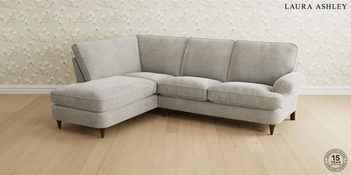 6.12.1 Buy Beaumaris by Laura Ashley Medium Sofa Chaise - Left Hand Edwin Chenille Silver Grey Low Turned - Teak from the Next UK online shop Click here to use our accessible website