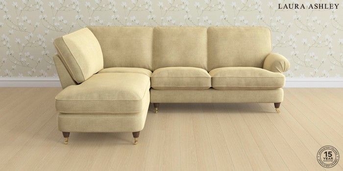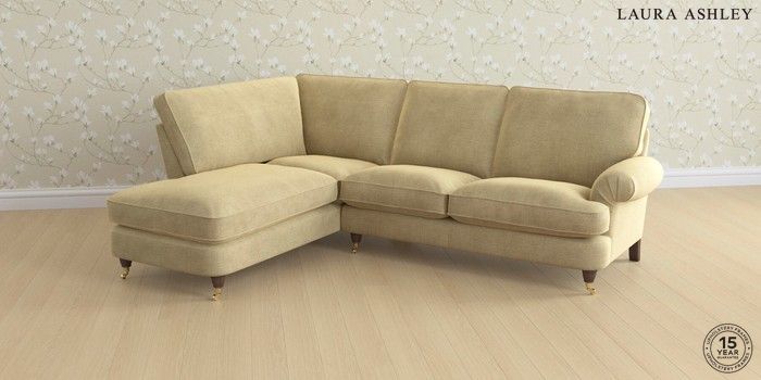 6.12.1 Buy Beaumaris by Laura Ashley Medium Sofa Chaise - Left Hand Edwin Chenille Truffle Natural Low Brass Castor - Chestnut from the Next UK online shop Click here to use our accessible website