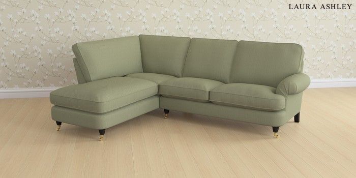 6.12.1 Buy Beaumaris by Laura Ashley Medium Sofa Chaise - Left Hand Edwin Herringbone Hedgerow Green Low Brass Castor - Black from the Next UK online shop Click here to use our accessible website