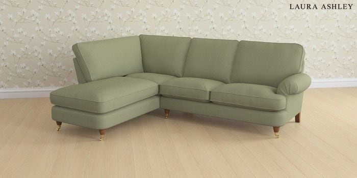 6.12.1 Buy Beaumaris by Laura Ashley Medium Sofa Chaise - Left Hand Edwin Herringbone Hedgerow Green Low Brass Castor - Teak from the Next UK online shop Click here to use our accessible website