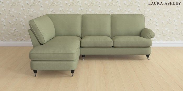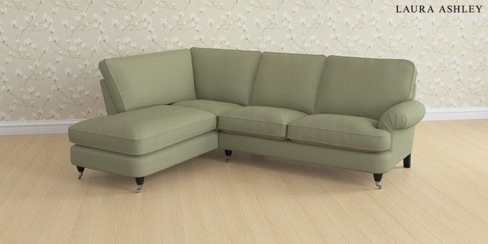 6.12.1 Buy Beaumaris by Laura Ashley Medium Sofa Chaise - Left Hand Edwin Herringbone Hedgerow Green Low Chrome Castor - Black from the Next UK online shop Click here to use our accessible website