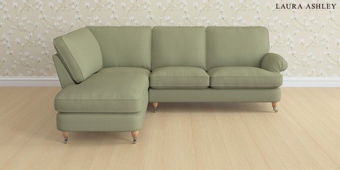 6.12.1 Buy Beaumaris by Laura Ashley Medium Sofa Chaise - Left Hand Edwin Herringbone Hedgerow Green Low Chrome Castor - Light Oak from the Next UK online shop Click here to use our accessible website