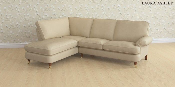 6.12.1 Buy Beaumaris by Laura Ashley Medium Sofa Chaise - Left Hand Edwin Herringbone Natural Low Brass Castor - Teak from the Next UK online shop Click here to use our accessible website