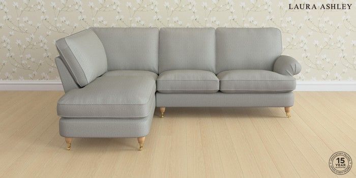 6.12.1 Buy Beaumaris by Laura Ashley Medium Sofa Chaise - Left Hand Edwin Herringbone Pale Steel Grey Low Brass Castor - Light Oak from the Next UK online shop Click here to use our accessible website