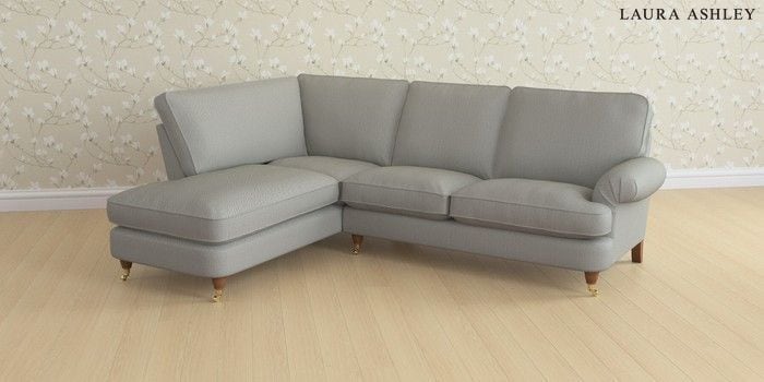 6.12.1 Buy Beaumaris by Laura Ashley Medium Sofa Chaise - Left Hand Edwin Herringbone Pale Steel Grey Low Brass Castor - Teak from the Next UK online shop Click here to use our accessible website