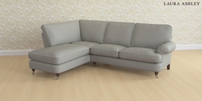 6.12.1 Buy Beaumaris by Laura Ashley Medium Sofa Chaise - Left Hand Edwin Herringbone Pale Steel Grey Low Chrome Castor - Chestnut from the Next UK online shop Click here to use our accessible website