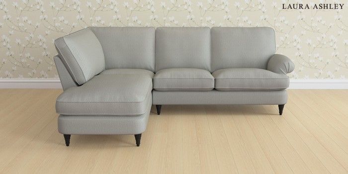 6.12.1 Buy Beaumaris by Laura Ashley Medium Sofa Chaise - Left Hand Edwin Herringbone Pale Steel Grey Low Turned - Black from the Next UK online shop Click here to use our accessible website