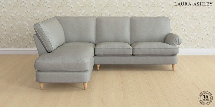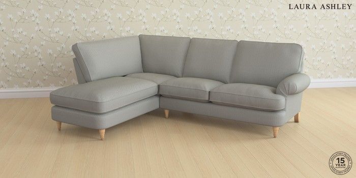 6.12.1 Buy Beaumaris by Laura Ashley Medium Sofa Chaise - Left Hand Edwin Herringbone Pale Steel Grey Low Turned - Light Oak from the Next UK online shop Click here to use our accessible website