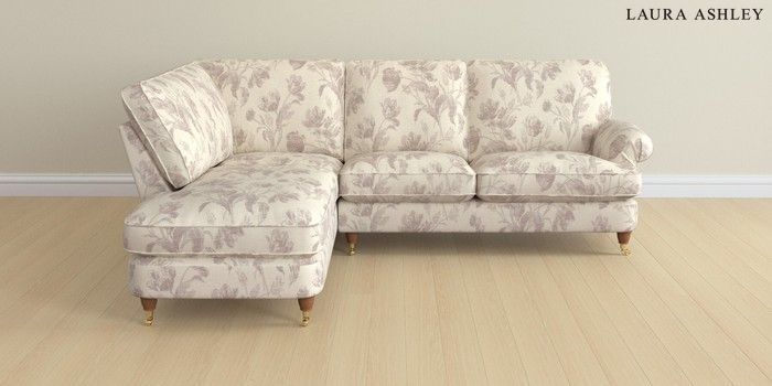 6.12.1 Buy Beaumaris by Laura Ashley Medium Sofa Chaise - Left Hand Gosford Weave Dusky Plum Purple Low Brass Castor - Teak from the Next UK online shop Click here to use our accessible website