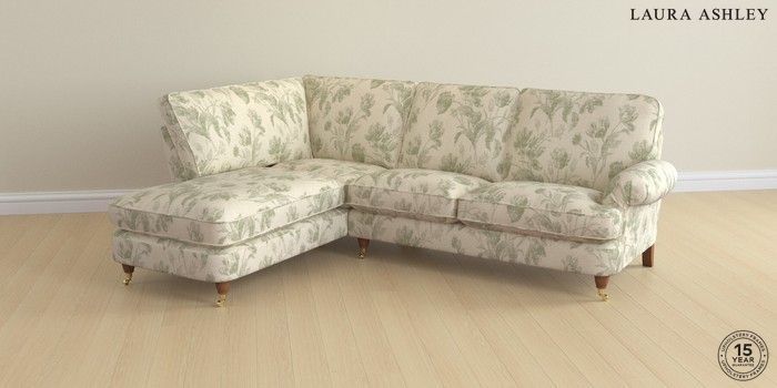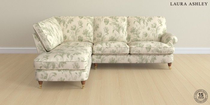 6.12.1 Buy Beaumaris by Laura Ashley Medium Sofa Chaise - Left Hand Gosford Weave Sage Green Low Brass Castor - Teak from the Next UK online shop Click here to use our accessible website