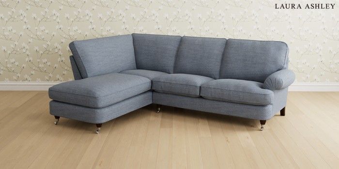 6.12.1 Buy Beaumaris by Laura Ashley Medium Sofa Chaise - Left Hand Harley Seaspray Blue Low Chrome Castor - Chestnut from the Next UK online shop Click here to use our accessible website
